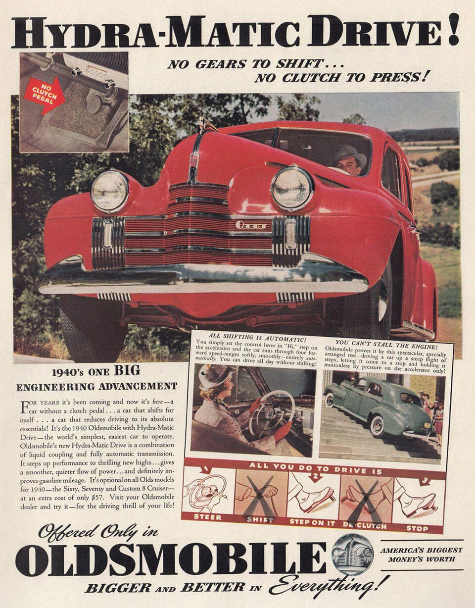 Nu sunt multi cei care stiu ca, in timp ce in Europa se desfasura cel de-Al Doilea Razboi Mondial, americanii de la General Motors scoteau pe piata primul automobil de serie cu transmisie automata. Aceasta se numea Hydramatic si a fost montata pe Oldsmobile Series 70, masina care a intrat in istorie drept prima produsa in serie cu transmisie automata.